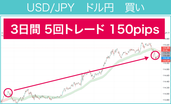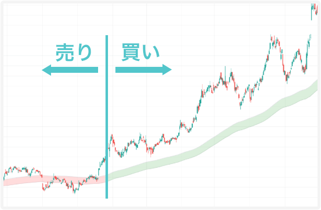 世間一般では、エントリーが 一番難しい要素と言われています。 トレードの勝敗がほぼ決まるからです。 このツールなら、 トレンドの転換から 売買ポイントを絞り込めます。 投資初心者でも今チャートが ・トレンドの初動なのか? ・買い方向か売り方向か? を ひと目で判断できるようになっています。